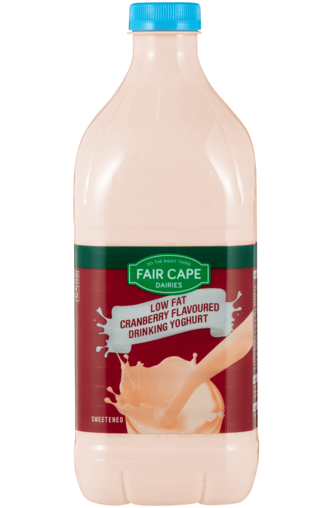 Enjoy Fair Cape's Low-Fat Cranberry-Flavoured Drinking Yoghurt, filled with dairy goodness. Enjoy it on its own or add it to your morning fruit or cereal!